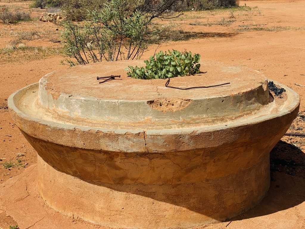 There was St. Celia’s Convent School, various houses, Big Bell School accomodating 50 students, but it closed 1943-45 when WWII affected the town. Many men went to serve overseas and some families returned to the big cities. They returned after the war, and in 1954 records show that enrolments were 100. There was a water fountain out the back of the school, and is still intact today. However no water flows, but there are some flowers growing and surviving in the middle.