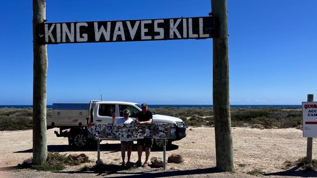 We also had our photo take under the famous sign King Waves Kill. Then a quick trip around the area, but the sand and corrugated roads we too much, so we moved on.