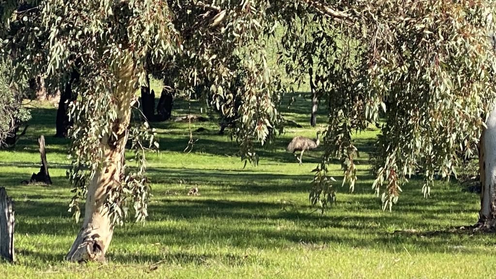 Two campers have seen an albino kangaroo, so my project is to go down there each day to see if I can see him. It’s my mission to get a photo. As it is to get one of the emus. The ranger said on or arrival that yesterday she saw Dad with 5 chicks strutting around. We did see 5 adults the next day, and two came into camp, but they creep in and out without much fanfare, so you have to be on your toes to see them.