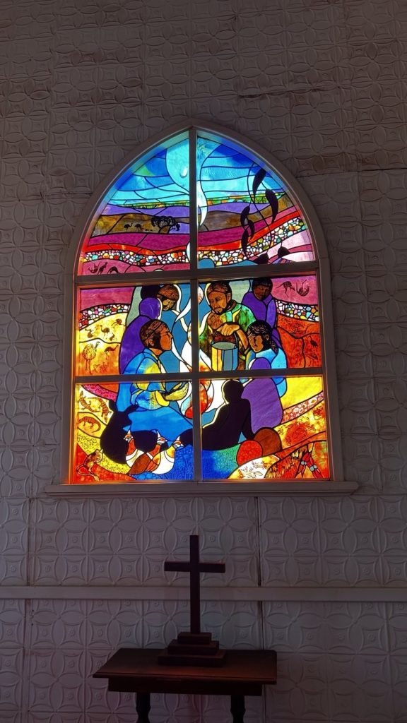 There’s a magnificent stained glass window behind the alter, and other stained glass windows down the side walls remain intact. Most of the pews are original as is the organ. Today it is mainly used for weddings, funerals and special occasions in the town.