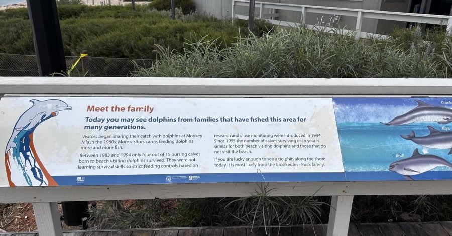 The jewel in the crown of this area, is Money Mia. Twice a day the rangers feed dolphins by hand. Visitors can take photos from the shore or from a short jetty, and occasionally they will select a few visitors to join them.