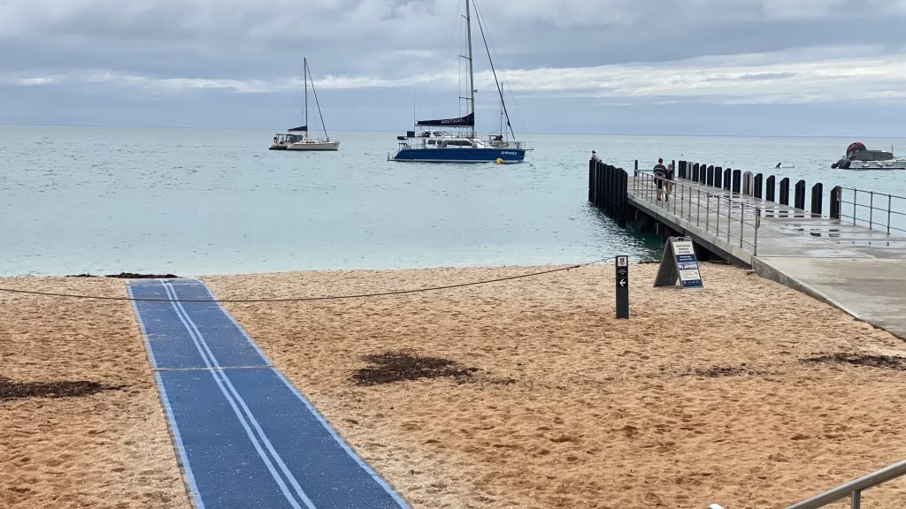 Obviously we were there late in the afternoon, looked through the Visitor’s centre with displays of bones from small creatures, dugongs, and turtles found in the area. We then walked along the jetty, not raining at the time, and as luck would have it, two dolphins swam around one large and one very small, so we presumed mum and her baby.
