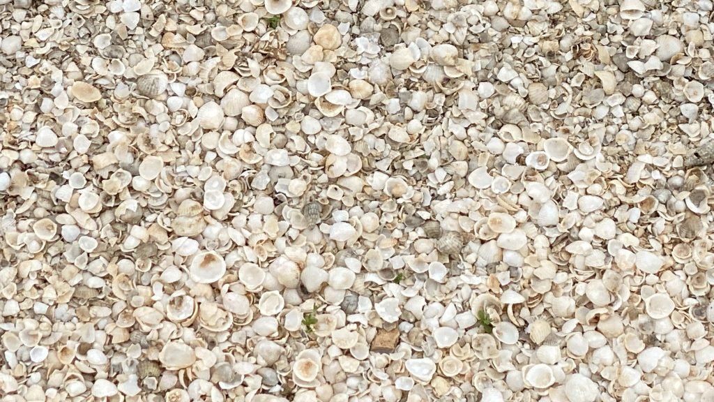Lots of information and photos on the billboards surrounding the area before you stepped onto the beach. It was a dull and showery day, so the weather didn’t allow us to see the beach in all its glory, but it was good enough. Millions of tiny shells cover this beach, instead of sand. Bit hard to walk on without footwear, but good to see anyway. Some areas the depth of the shells goes to 9 metres.